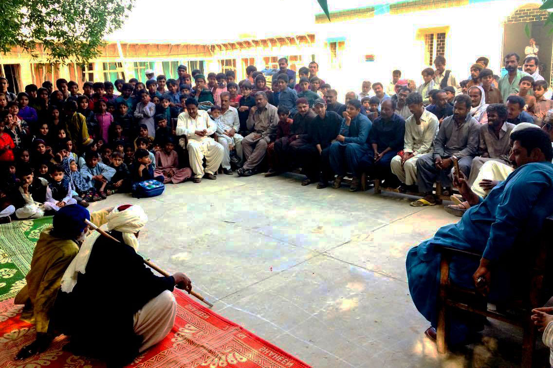The theater team is comprised on 7 members, including males and females. The theater actors received the training from different institutions and now they are practicing for social change in Sindh region. With engagement male and female community local leaders, influential, religious leaders, community activists and other relevant stakeholders to provoke critical thinking to address violence against women by men. Through the workshops they become aware of men’s power over women and how the community’s silence and unwillingness to interact with this power perpetuates violence against women.